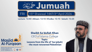 Masjid Al Furqaan Live Jumuah by Sheikh Sa'dullah Khan - 15 Shawwal 1447/3 April 2026