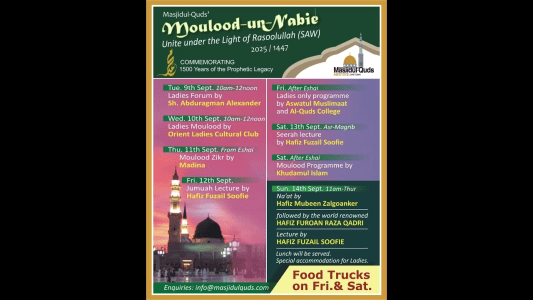 The Daily Schedule highlights all the programmes taking place each day by Masaajid and Organisations, with the time and links on how to access them online.
