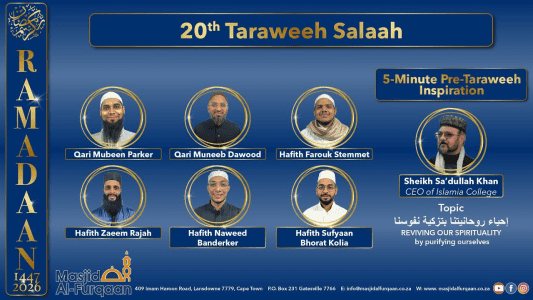 The Daily Schedule highlights all the programmes taking place each day by Masaajid and Organisations, with the time and links on how to access them online.